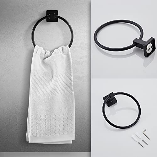 Matte Black Bathroom Hardware Set 4 Pieces,Towel Bar Set Stainless Steel Wall Mounted, Includes 16In Hand Towel Bar, Towel Ring, Robe Towel Hooks,Toilet Paper Holder, Bathroom Towel Rack Set