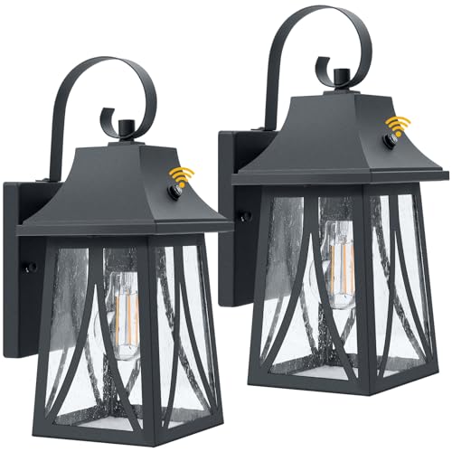 Dusk to Dawn Outdoor Wall Light Fixtures with Sensor, Waterproof Wall Mounted Lighting with Water Glass, Anti-Rust Exterior Sconce Lantern for Porch Outside Patio Garage Front Door Entryway, 2-Pack